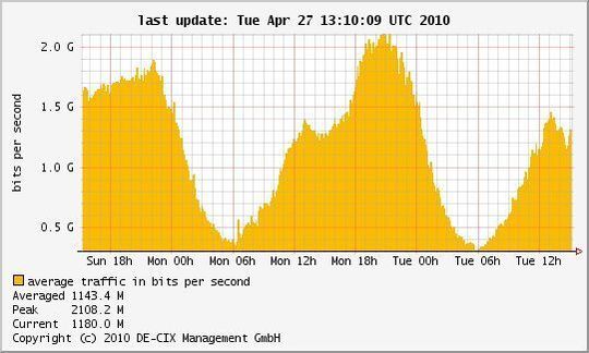 Die drei waren damals mit einer Bandbreite von je 2 Megabit pro Sekunde an den ersten De-CIX angeschlossen. Zum Vergleich: Heute, im Jahr 2010, ist der Internet-Zugang mit Bandbreiten von 16 Megabit pro Sekunde in jedem Privathaushalt fast so selbstverständlich wie der Wasseranschluss.